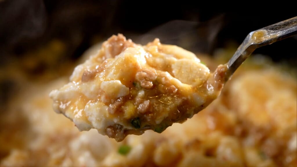 肌寒くなるこれからの季節にぴったりなのが、「麻婆鍋定食」です。鍋の中には、なんと豆腐が丸ごと一丁入っており、見た目のインパクトも抜群。熱々の鍋で提供され、特製の味噌と豆腐の相性は格別です。豆腐を崩しながらいただくことで、心も体も温まります。お好みで溶き卵を入れるのもおススメだそうですよ♩