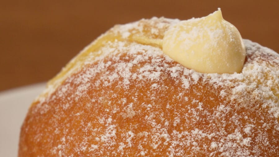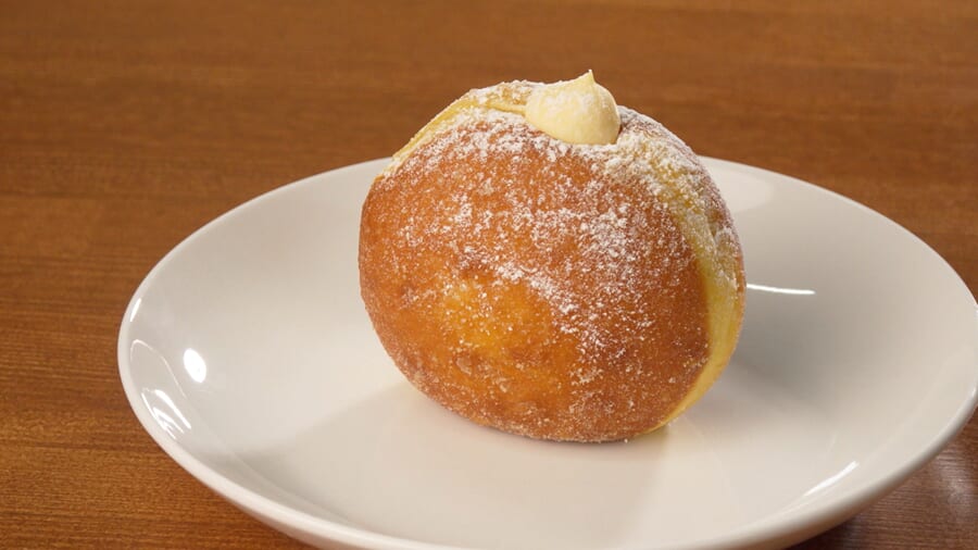 第3位は「カスタード」です!丸くてかわいらしい形のドーナツ生地の上には、とろりとしたカスタードクリームがたっぷりかかっています。ふわもち食感でとっても美味しいです♩