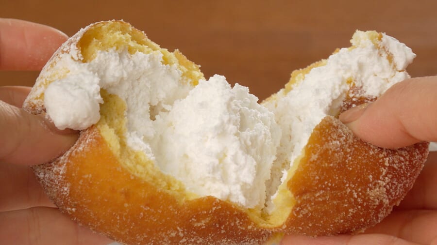 最も人気のある第1位は「ホイップ」でした!真っ白なホイップクリームが中からあふれ出す、見た目にも魅力的な一品です。オーナーによると、クリームはなめらかさを保つよう、毎回丁寧に作っているとのこと。口に入れるとすっと溶けるような、なめらかな口当たりが特徴です。