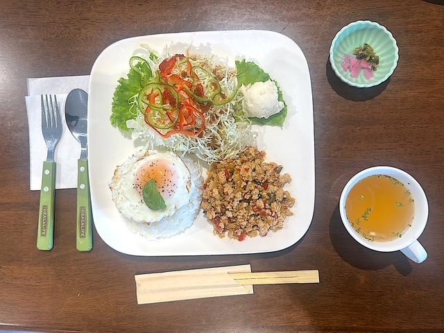 続いてこちらは、お客様に人気のガパオライス♪なかなかガパオライスは食べる機会がないのでメニューにあるのはうれしい!ピリ辛で食欲が増す逸品!ごはんも進む進む!笑