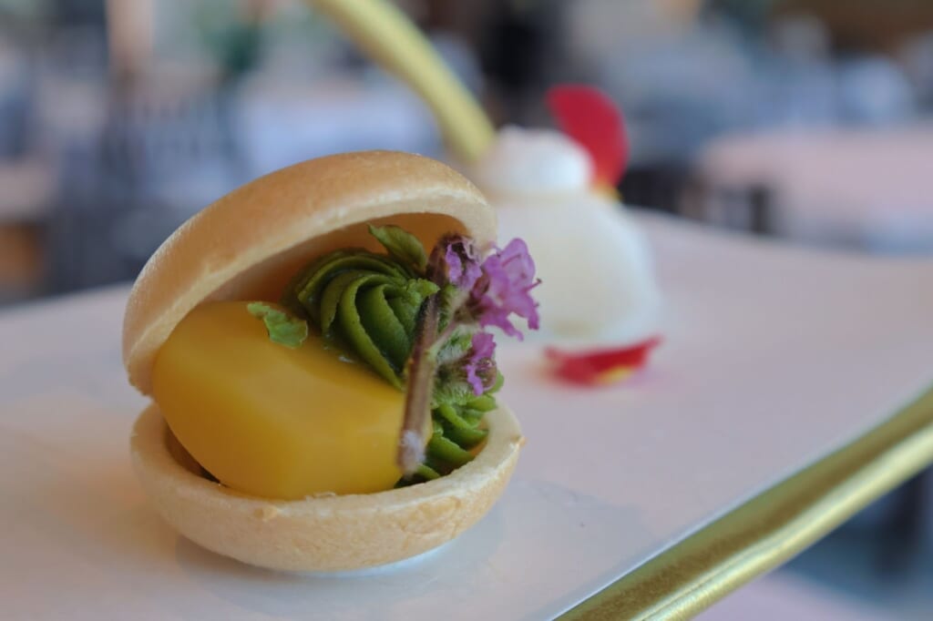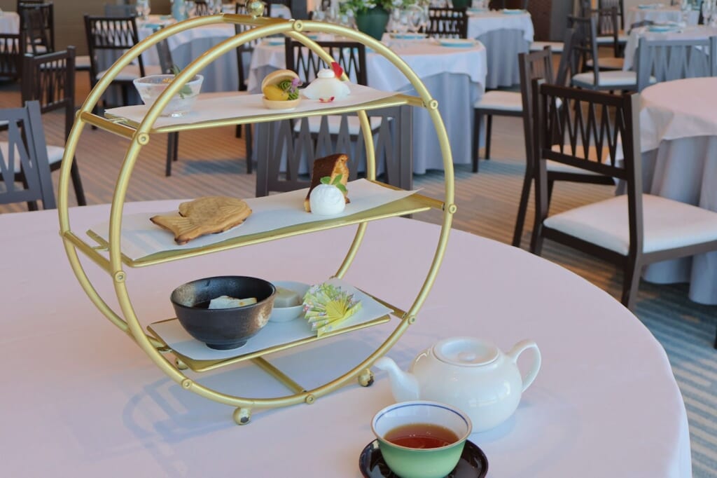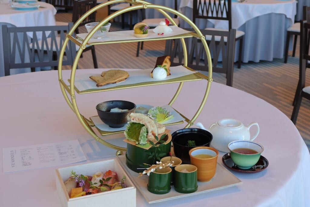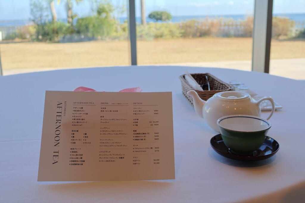 和のセイボリーと共に楽しめるアマンダンブルー青島の「寿ぎアフタヌーンティー」は事前予約制です。詳細はアマンダンブルーの予約サイト(※最下部の店舗情報)をご覧ください。