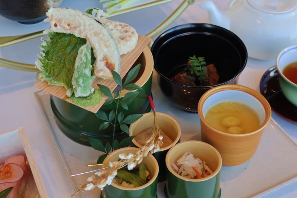 続いて運ばれてきたのは、お正月らしい装いの和食プレート。旬の食材と縁起の良い食材を取り入れており、丁寧に仕上げられています。