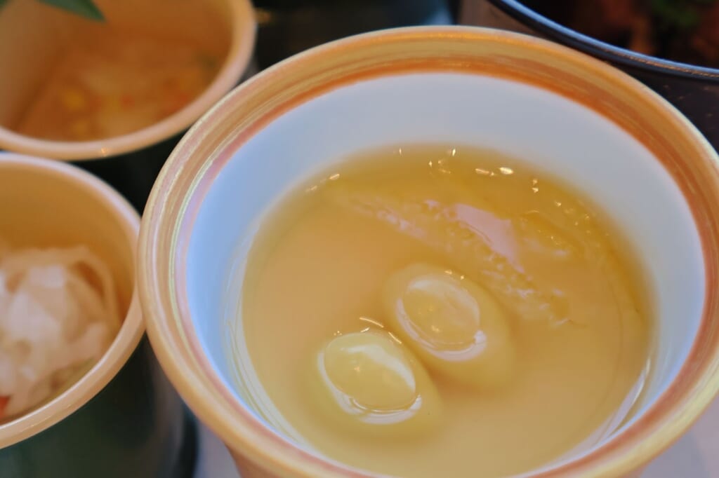 優しい出汁の効いた胡麻豆腐。スイーツの間にこのような塩味が欲しくなる時ありますよね!お口直しにも嬉しい!