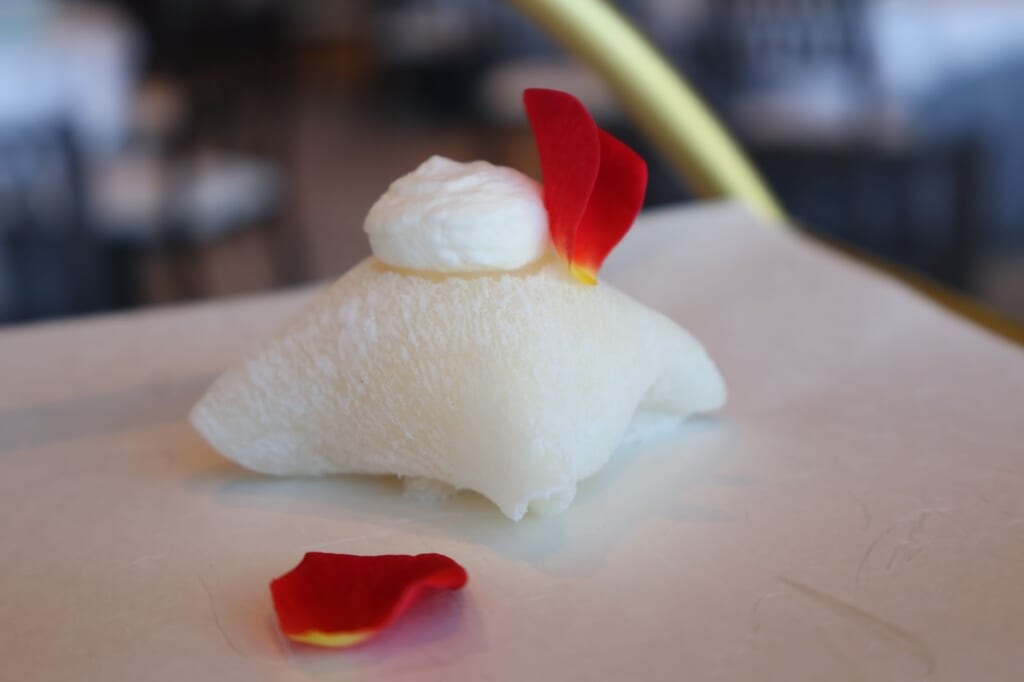 牛皮のもっちりした食感とクリームチーズのもったりした甘さが合わさってまさに至福…。赤と白の色合いも縁起が良くて気分が上がりますね♩