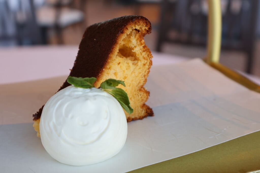 特に感動したスイーツの一つが「生カステラ」。通常のカステラよりも食感が滑らかで甘さも際立ちます。クリームと合わせて頂きます。