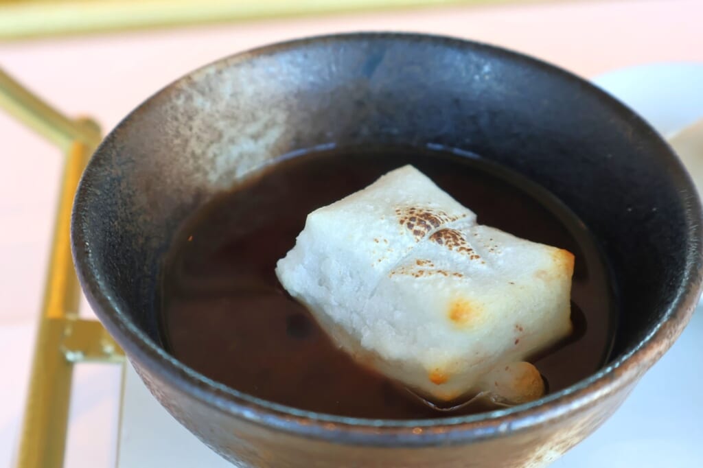 焼き餅のパリッとした食感とぜんざいの汁気が合わさって絶妙なバランスです!ぜんざいは和のスイーツの代表ですよね。