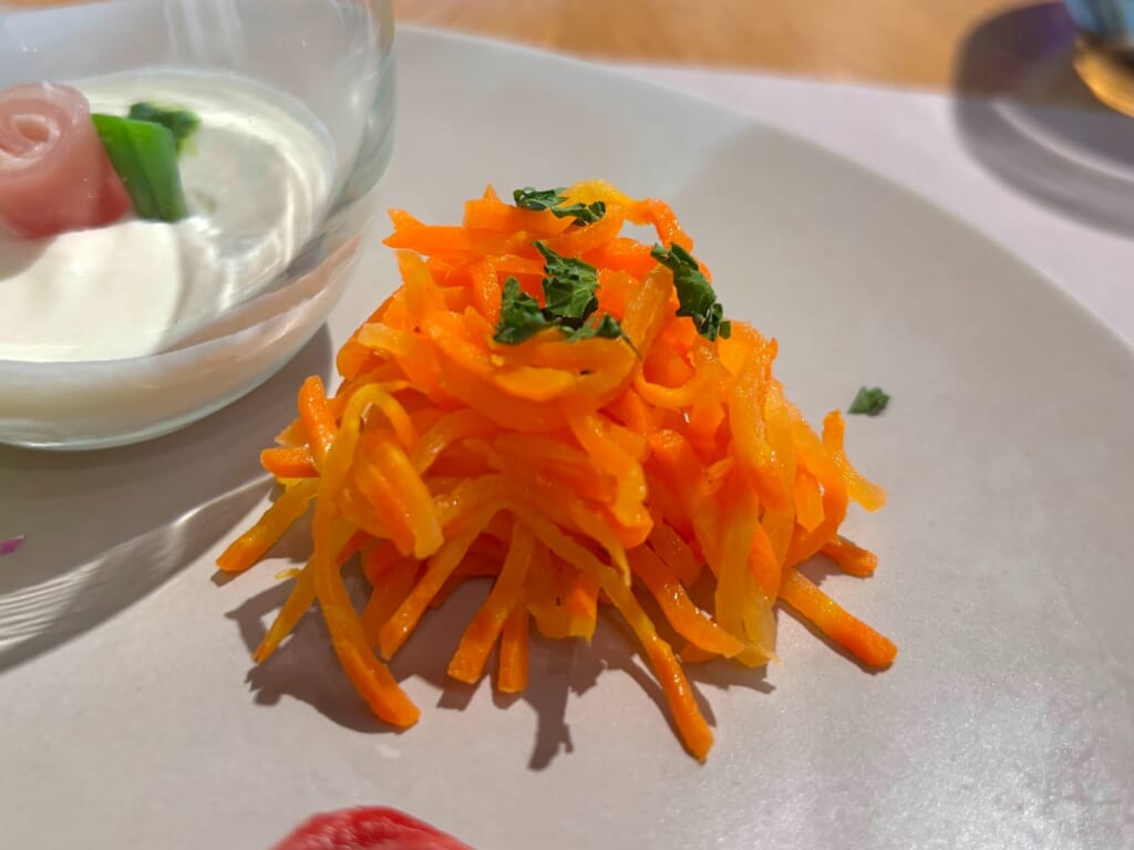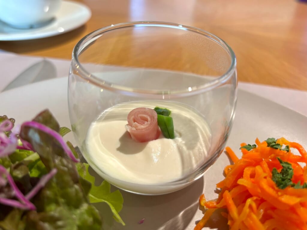 カブの風味と生クリームの滑らかさが上品なムースを作り上げており、そこに塩味のある生ハムがとっても合います!