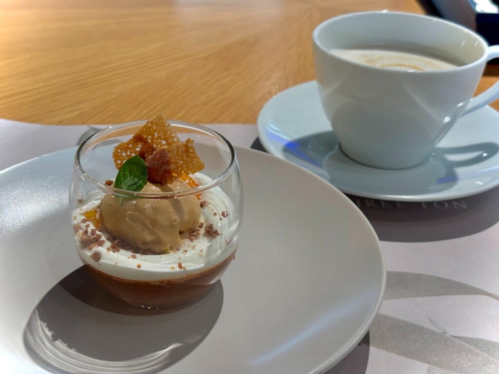 チョコプリンの甘さと、キャラメルアイスのほろ苦さ、生クリームとプリンの滑らかさとアーモンドのパリパリ感と、様々な味や食感を楽しむことができるデザートでした!