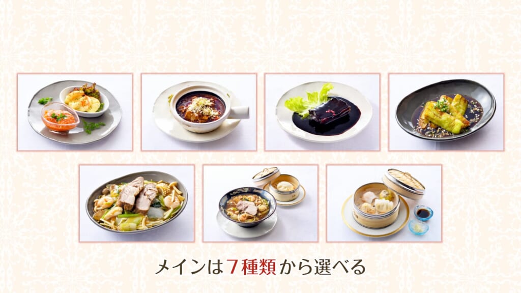ランチのメインは、7種類から選ぶことができます!選べるメイン料理に、日替わりスープ、ライス、そしてパティシエ特製のデザートが付いたセットです。メインを1品選ぶセットは1,320円、2品選べるセットは2,420円と、気分に合わせて楽しめますよ♪