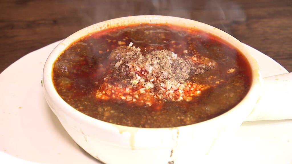 自家製ラー油が味の決め手「香港土鍋・花山椒香る国産牛すじ煮込みマーボー豆腐」