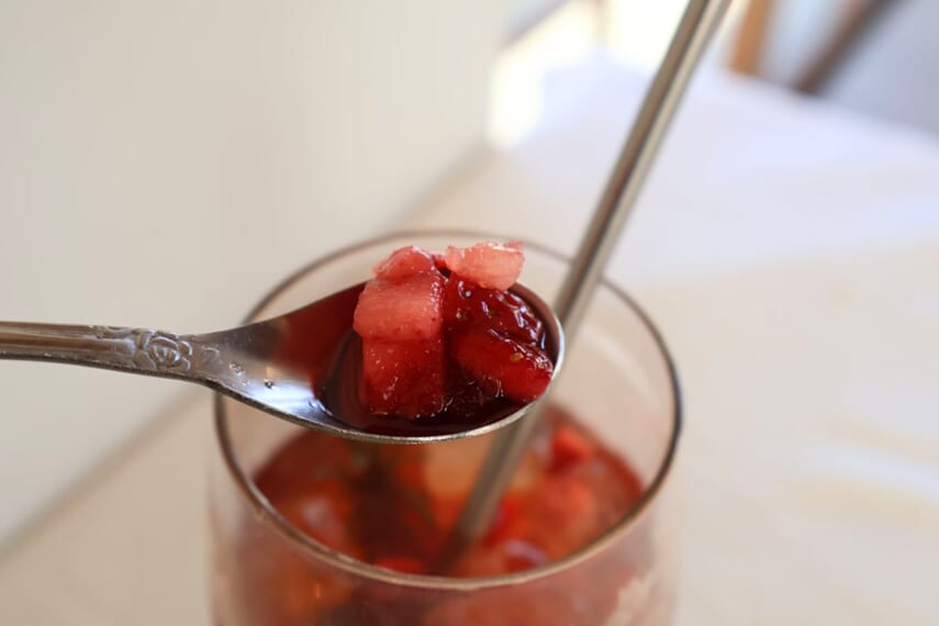 スプーンを入れるたびに違った食感と味わいが楽しめるのも魅力です。いちごそのものの味を主役にした構成なので、重たさがなく、食後でもぺろりと食べられる軽やかさがあります。