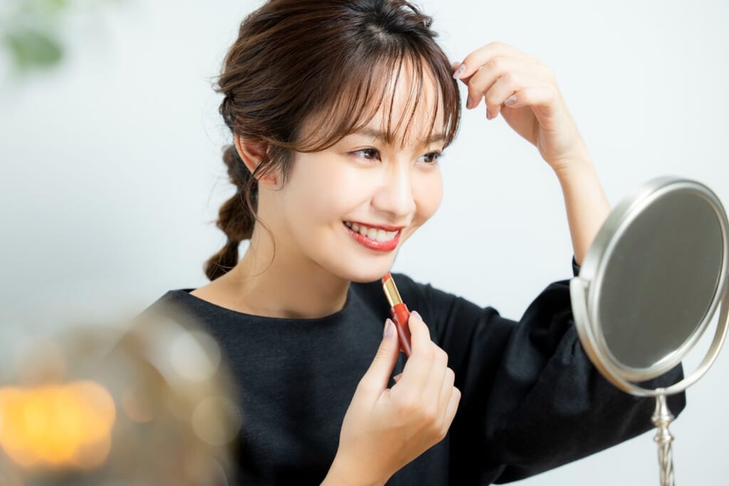 ほんのりツヤのあるリップは、やわらかく女性らしい印象を演出します。逆に乾燥していたり皮むけが目立ったりすると、清潔感が損なわれてしまうことも。