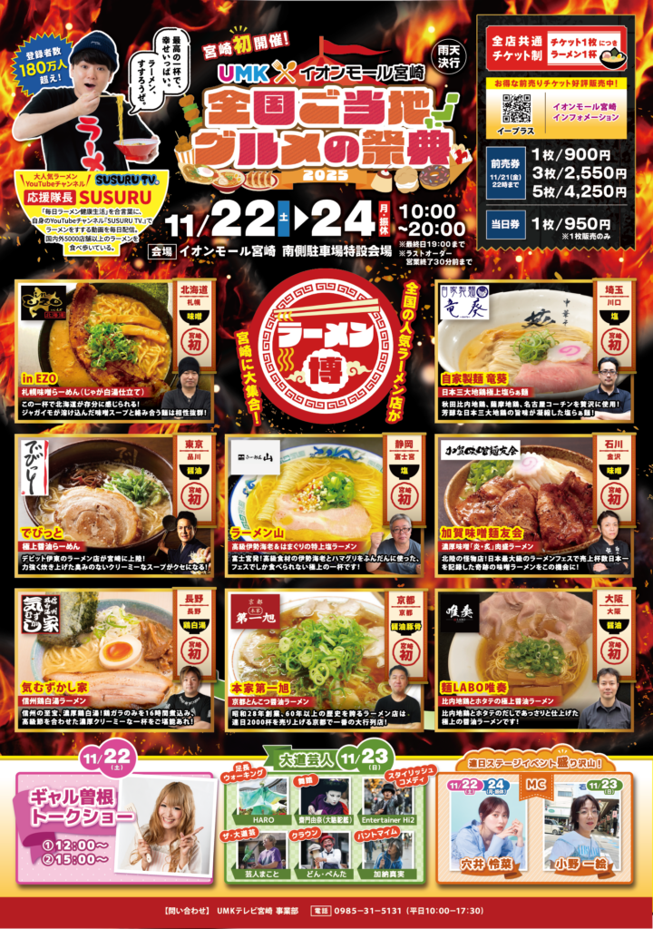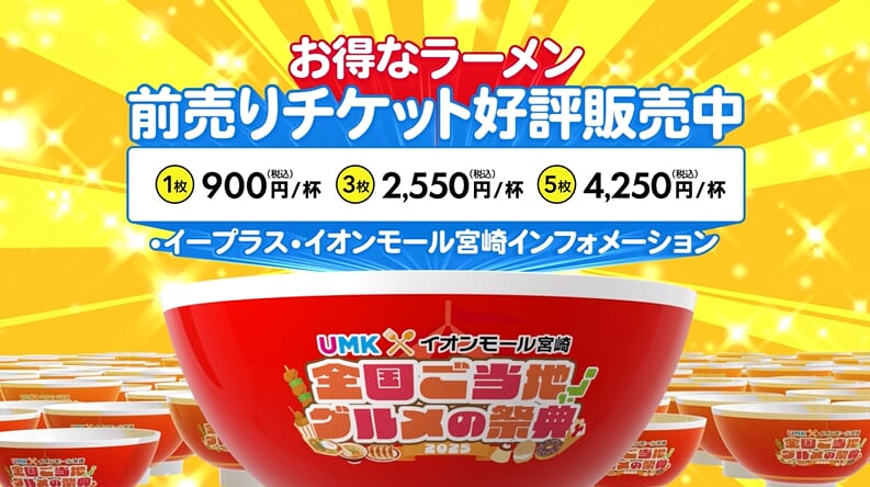 お得なラーメン前売りチケットも好評発売中です!ぜひ11月22日(土)23日(祝・日)24日(振・月)は家族でイオンモール宮崎に足を運んでみて下さいね♪