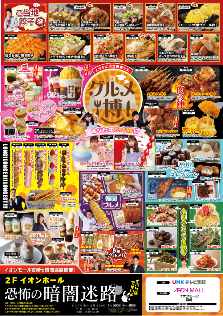 11月22日(土)-11月24日(月・祝)イオンモール宮崎ではUMK×イオンモール宮崎「全国ご当地グルメの祭典2025」が開催!普段宮崎ではお目にかかれない全国各地の人気ご当地グルメがこの秋イオンモール宮崎に大集合!