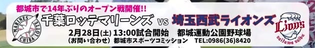 ・2月28日(土)13:00~ 千葉ロッテマリーンズ vs 埼玉西武ライオンズ(都城運動公園野球場)