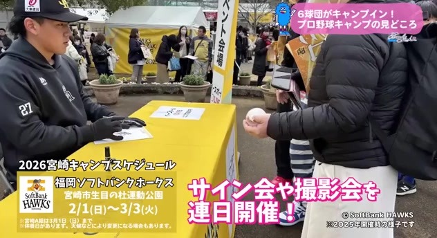 「ファンサービスでも”日本一”を目指す」ホークスの春季キャンプでは、選手によるサイン会や撮影会などを連日開催!宮崎グルメやキャンプ限定グッズの販売など、ファンが楽しめるイベントが盛りだくさんです!!