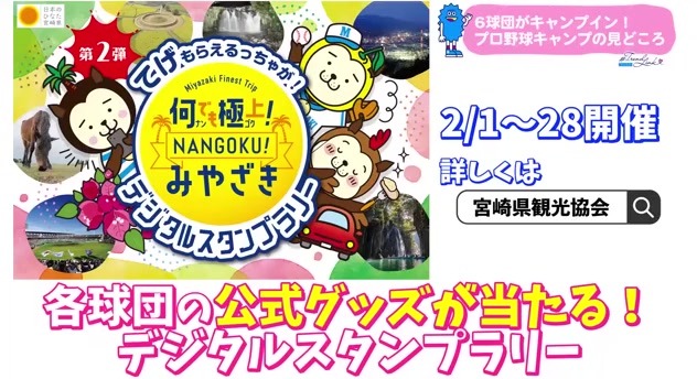 さらに、キャンプ地と県内の観光地をめぐって各球団の公式グッズが当たるデジタルスタンプラリーも実施中!