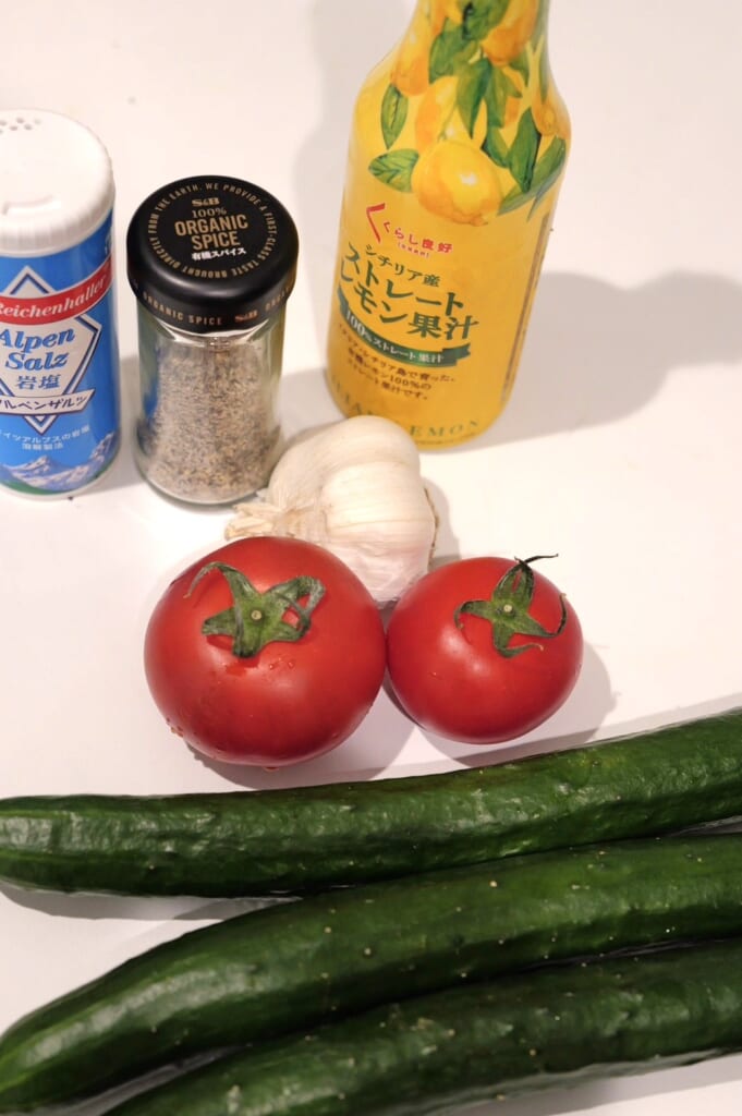 01 トマトを食べやすい大きさに切ります🍅きゅうりも食べやすく切ります🥒
