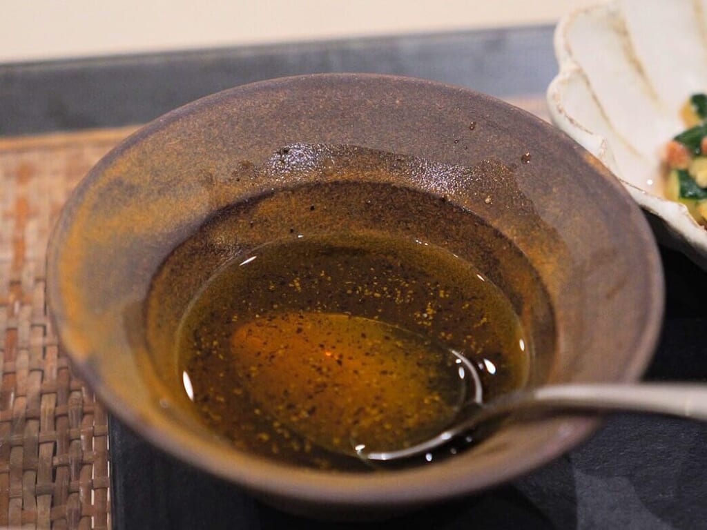 洋梨の甘みと魚の旨み、マッシュルームの香りが合わさってとても上品。