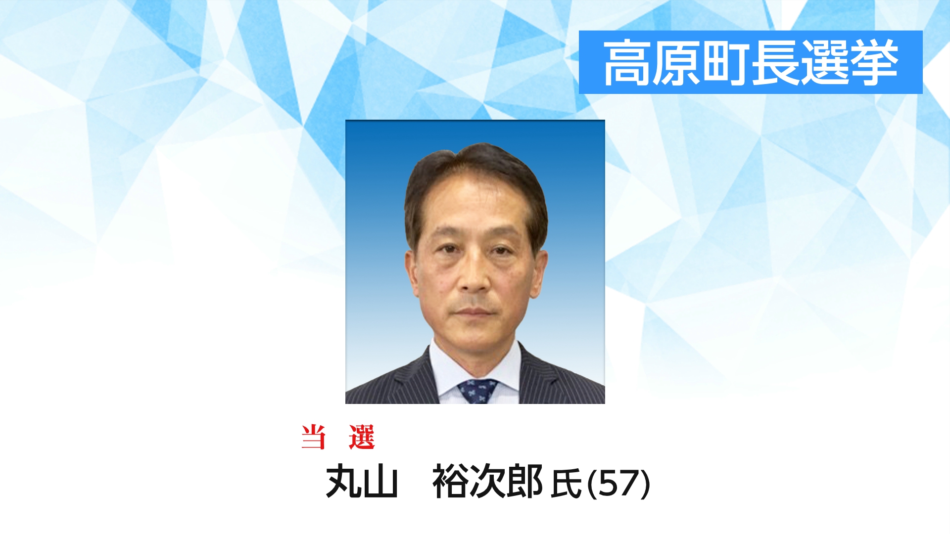 新人2人による一騎打ちとなった高原町長選挙は5日投開票が行われ、新人で元県議会議員の丸山裕次郎氏(57)が初当選を果たした。投票率は65.37%と、前回の69.30%を下回った。