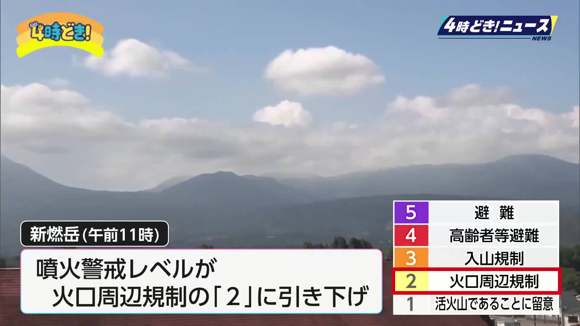 新燃岳について気象庁は、二酸化硫黄の放出が減少するなど火山活動の低下が認められるとして、17日午前11時に噴火警戒レベルを約4カ月ぶりに火口周辺規制の「2」に引き下げました。