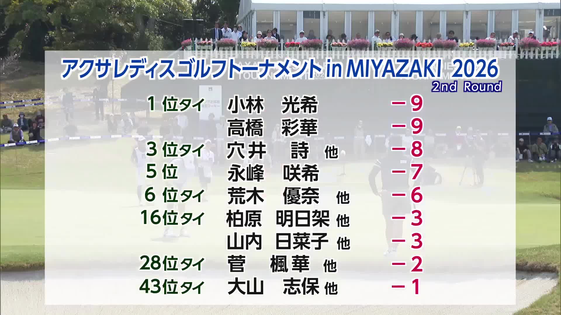 地元優勝に期待! アクサレディス宮崎2日目 宮崎県勢が上位争い