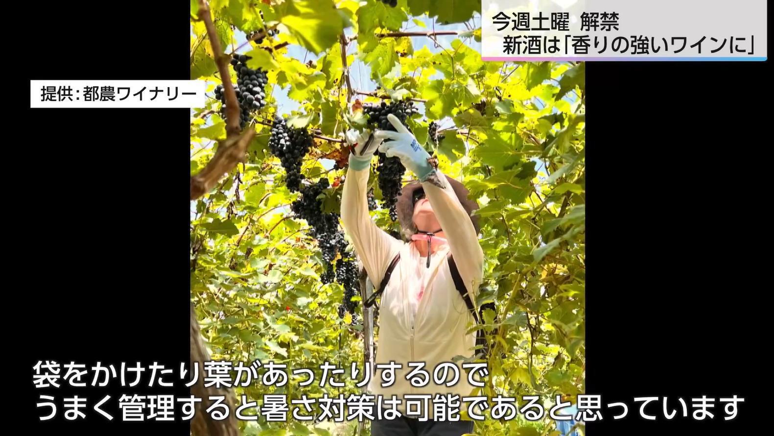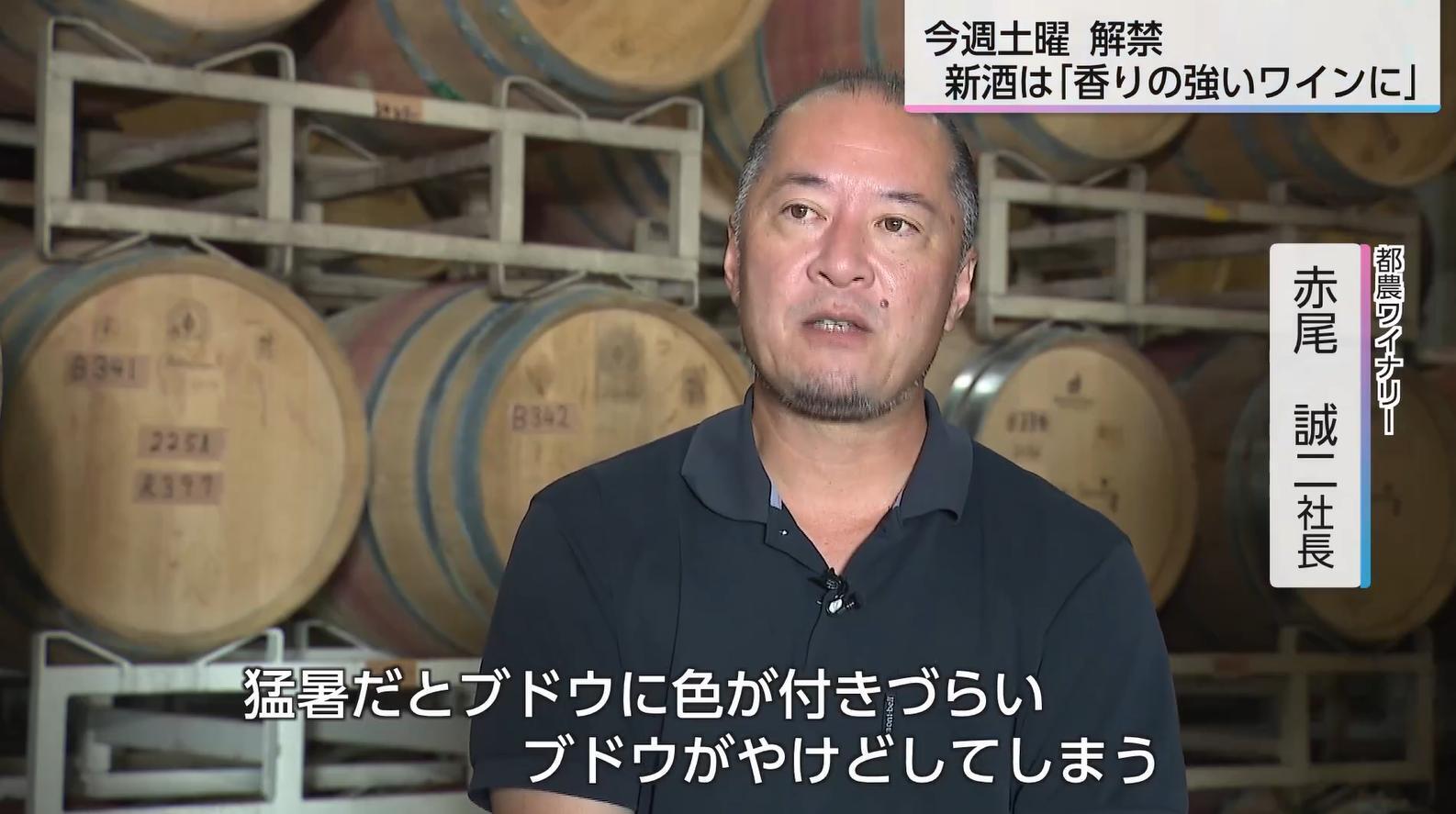 都農ワイナリーの赤尾誠二社長は、「猛暑だとブドウに色がつきづらかったり、物理的に日照の強さでやられてしまったりすることがある」としながらも、「元々、暑い場所、雨の多い場所、台風の来る場所で産地を形成している農家さんたちなので、素よりそういう技術力があるおかげで、こういう猛暑や豪雨を乗り切れたのではないかと思う」と、農家の技術力に敬意を表した。