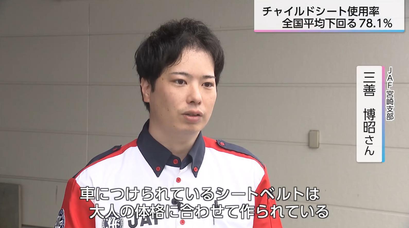 宮崎県内のチャイルドシート使用率は78.1%と前年より15ポイントも上昇し、ここ3年で最も高くなった。しかし全国平均は82.4%とさらに高く、宮崎県は3年連続で全国平均を下回る結果となった。専門家は子供の命を守るため、適切な使用を呼びかけている。