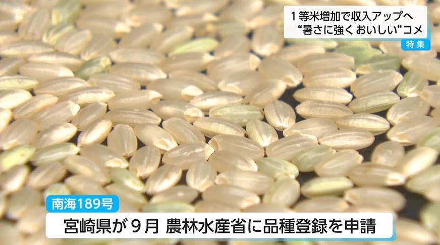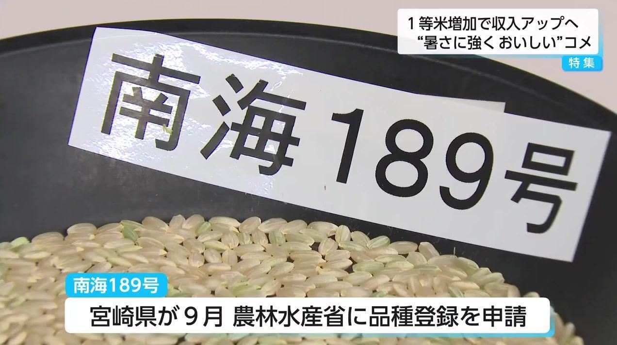 宮崎県で暑さに強くて美味しい新品種のコメ「南海189号」が開発された。近年、夏の猛暑によるコメの品質低下が課題となる中、次世代のエースとして期待が高まっている。
