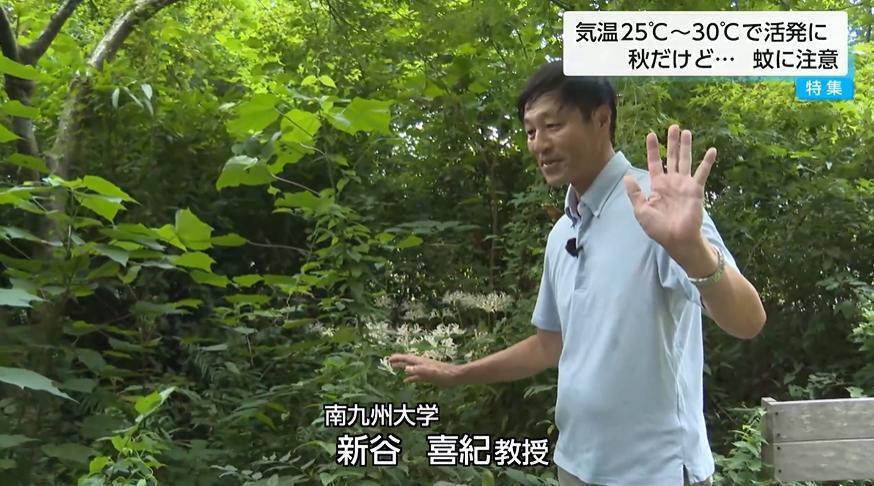 雑草が生い茂る場所や地面が湿った場所に「蚊」が多く集まるという。9月26日、昆虫の生態に詳しい南九州大学の新谷喜紀教授と共に大学内の草木が生い茂った場所を訪れると、ものの数分で蚊が寄ってきた。