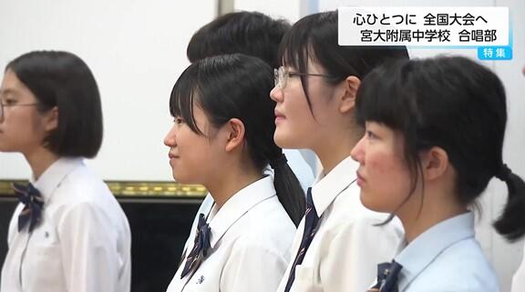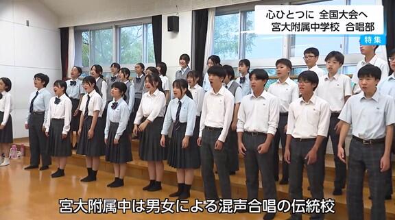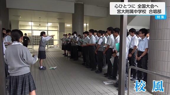 少子化の影響で部員集めに苦労する学校が多い中、宮大附属中は毎年40人前後の部員を擁し、混声合唱を継続している。その背景には、学校全体で合唱を盛り上げようという校風があった。