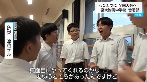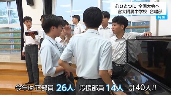 このうち宮崎市の宮崎大学教育学部附属中学校は、1年生から3年生までの40人が所属している。混声合唱の伝統校として知られていて、10月26日に富山県で開催される全日本合唱コンクール中学混声の部に3年連続での出場となった。