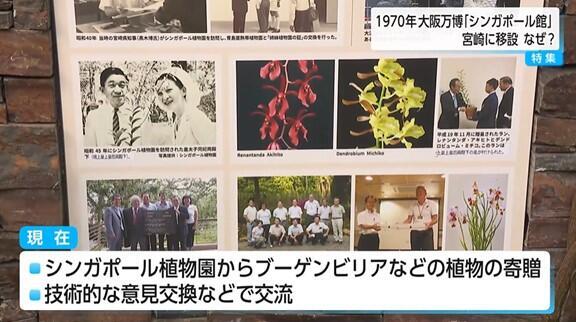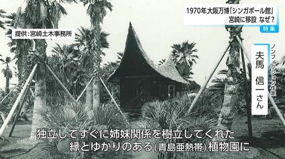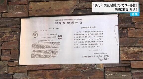 70年に開催された大阪万国博覧会(大阪万博)に出展された「シンガポール館」が、宮崎県に運ばれ移設されていた。24年後に台風で倒壊してしまったが、シンガポールと宮崎の植物園は「姉妹植物園」として交流を続けている。そこには独立直後からの"絆"があった。