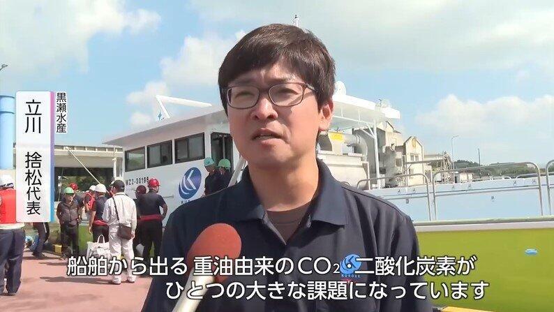 船舶から出る重油由来のCO2二酸化炭素がひとつの大きな課題になっている。脱炭素の観点からも、今回の実証試験を通じてカーボンニュートラルな養殖業が達成できるのではないかと期待している。