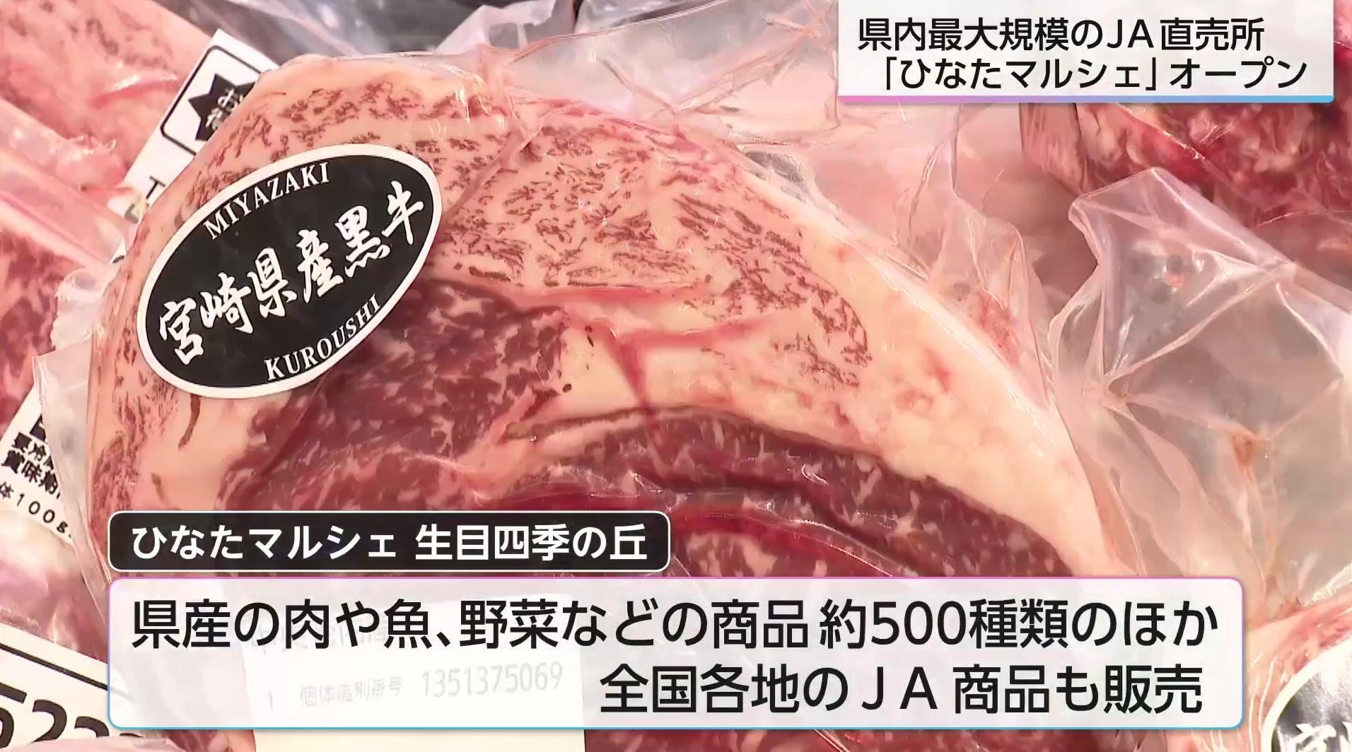 宮崎市にJAみやざきの新直売所『ひなたマルシェ生目四季の丘』がオープンした。県内最大規模の売場には新鮮な県産品500種以上が並び、初日から多くの買い物客が詰めかけた。