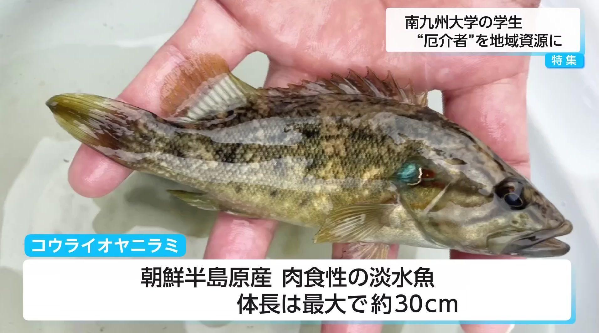 宮崎県で爆発的に繁殖し、在来種の生態系を脅かす外来魚「コウライオヤニラミ」。この問題に、南九州大学の学生が新たな解決策を提示した。それは「食べて駆除」。環境園芸学科と管理栄養学科の学生が共同で、コウライオヤニラミを使ったレシピを開発した。