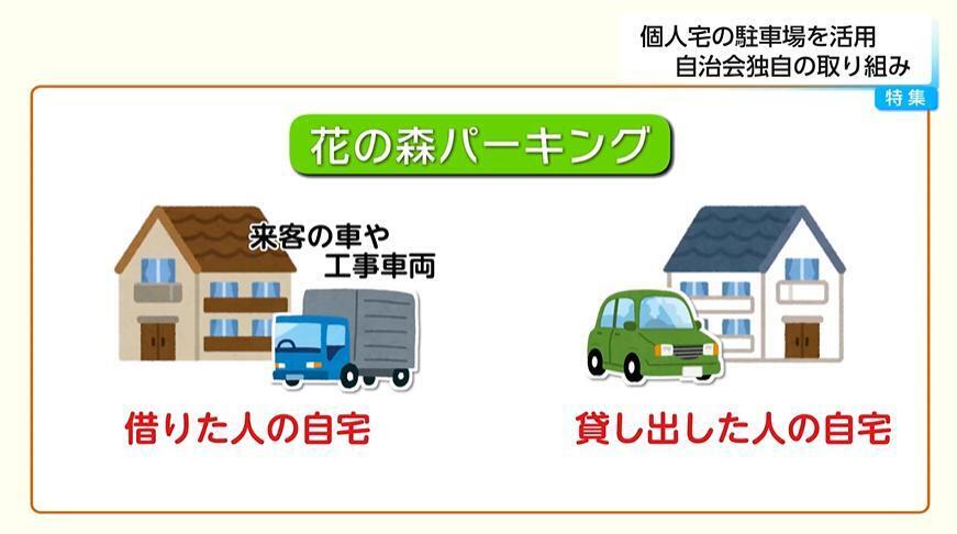 駐車場のスペースが空いている家と、来客や工事車両などで、どうしても駐車スペースが必要になった方とのマッチングをするようなシステムになっている。