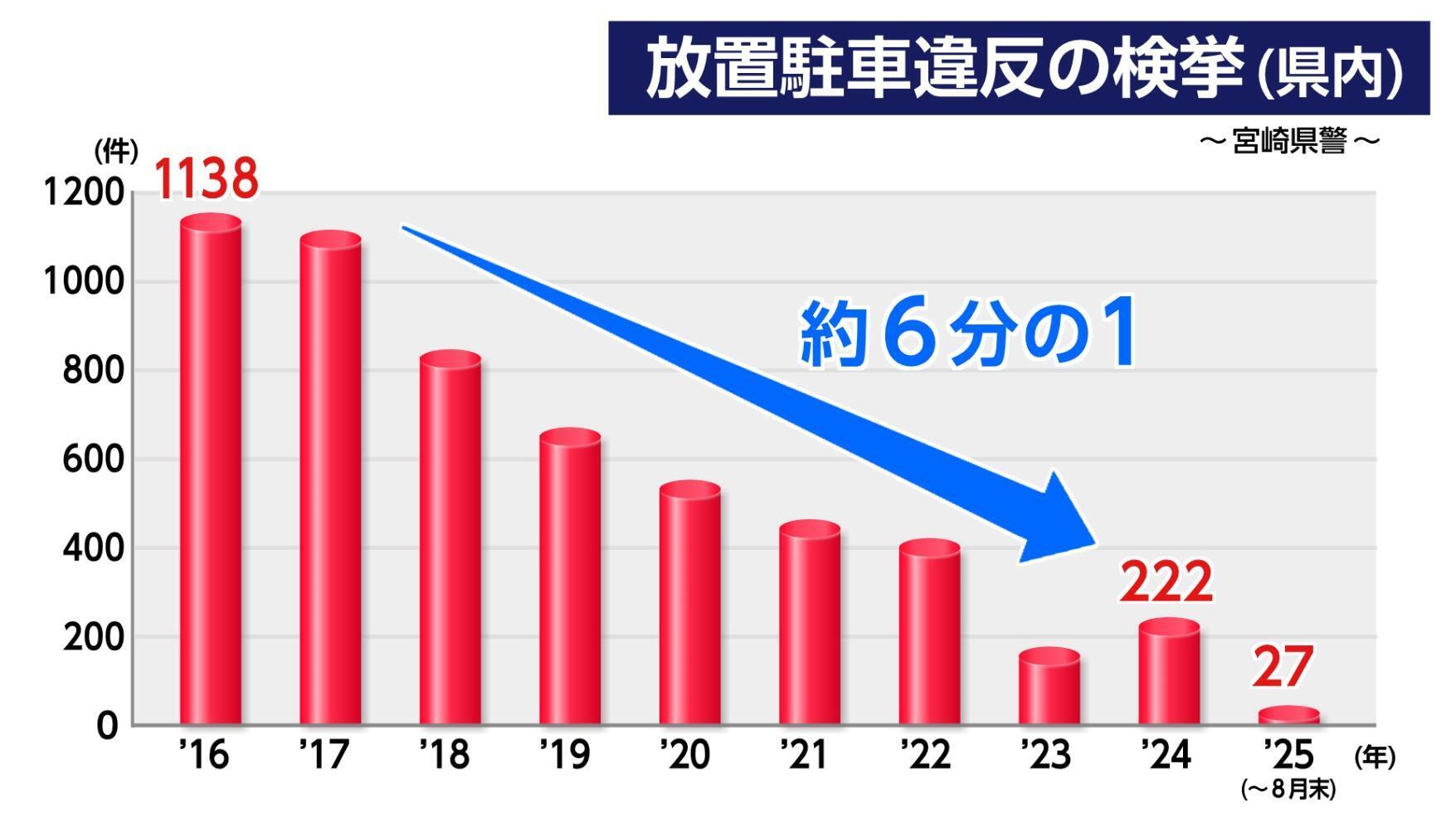 【動画】路上駐車防止への取り組み 宮崎県内の検挙数この10年で6分の1に減少 個人宅の空き駐車場活用も