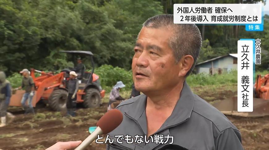 立久井農園の立久井義文社長は、外国人労働者について「とんでもない戦力」だと評価する。「国を出て日本で働こうという気概を持って来ているので全く遜色のない人たち」と、その働きぶりを称えた。