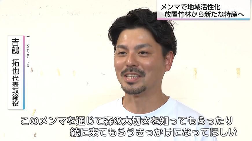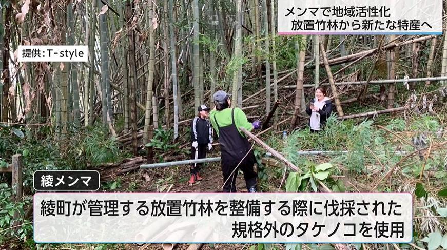 放置竹林を有効活用し、地域活性化につなげようと、新たな特産品「綾メンマ」が開発された。開発したのは、宮崎市で飲食店を経営するT−styleの代表取締役・吉鶴拓也さん。吉鶴さんは綾町の豊かな自然、食、景観に魅せられ、5年前に東京から移住した。