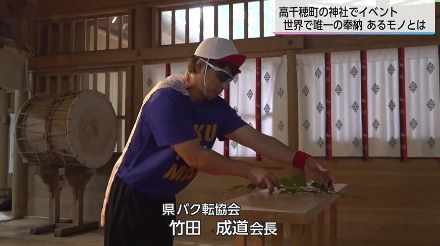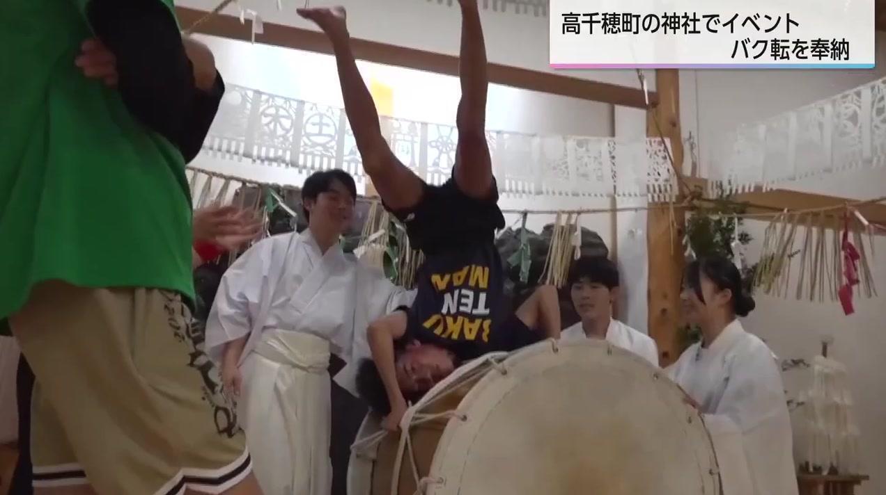 宮崎県バク転協会の竹田成道会長がバク転を奉納した。