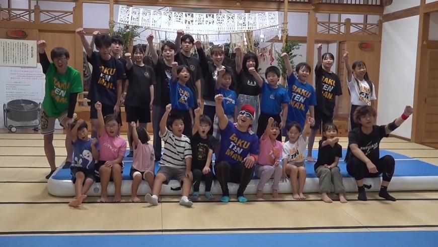 (神職の方から)舞手さんが少なくなっているというのを耳にした。日頃から逆立ちや三点倒立を教えてる私が少しでも貢献したいなと思って、今回このようなイベントを開いた。バク転というのは一般的に怖いというイメージがあるけど、バク転は後ろ向きだけど気持ちは前向きになれるので、是非バク転を通してバク転以外のことにもどんどん挑戦してほしいなと思う。