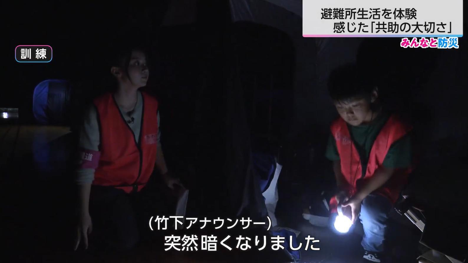1泊2日の避難所生活を竹下凜アナが体験 暗闇の避難訓練も抜き打ちで...「グッズの実用性」「共助の大切さ」に"気づき"