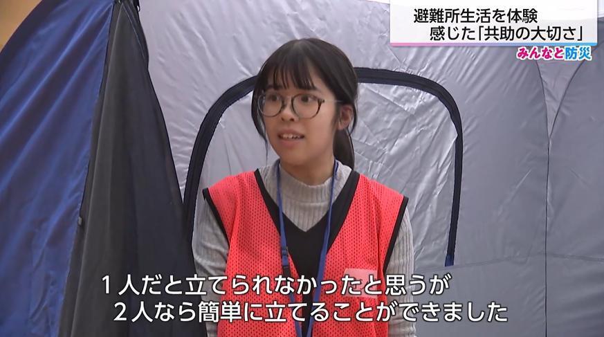 また、「避難したら自分で身の回りのことをしなければいけないと思っていたが、いろいろな人と協力して避難所をつくっていくのが初めての体験だったので、参加してよかった」と、共同作業の重要性を改めて認識した様子だった。