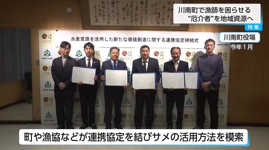 こうした状況を受け、2025年1月に川南町や漁協などが連携協定を締結し、サメの活用方法を模索。