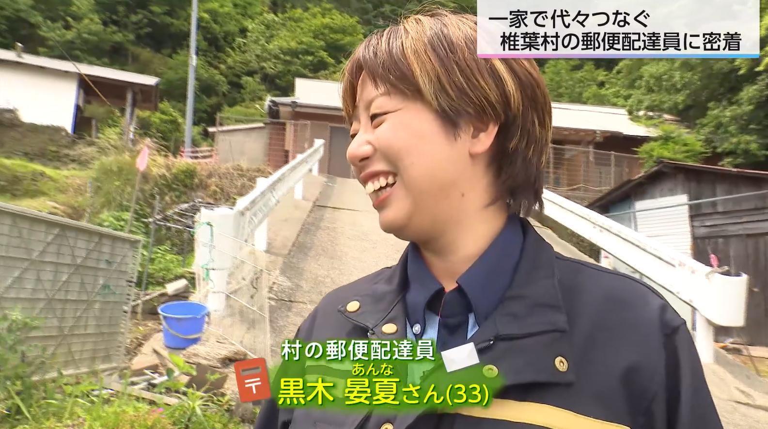 日本三大秘境の一つに数えられる宮崎県椎葉村は、面積の96%を森林に覆われ、豊かな自然が広がる。この村で100年以上にわたり地域住民の日常を支えてきた郵便配達業務の4代目を務める黒木晏夏(くろぎ・あんな)さん。曾祖父の代から続く家業を継ぎ、山道を駆け巡る黒木さんは、地域住民にとってなくてはならない存在となっている。