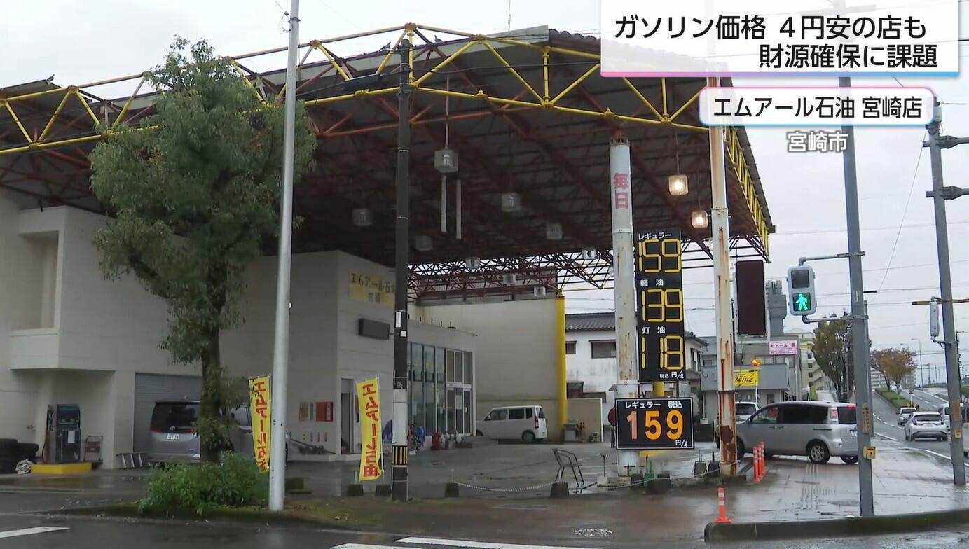 ガソリン税に上乗せされている暫定税率の年内廃止に向け、国は13日からガソリンへの補助金を段階的に増額する。これにより、12月31日の暫定税率廃止を待たずに、ガソリン価格は徐々に引き下げられる見込みだ。宮崎市では、一部のガソリンスタンドが既に価格を下げ始めており、消費者の期待が集まっている。一方で、暫定税率廃止に伴う地方税収減への懸念を口にする人もいた。