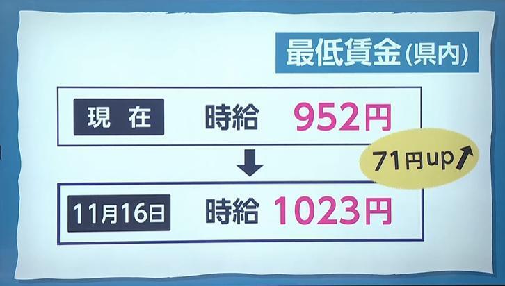 宮崎県では11月16日に最低賃金が引き上げられた。最低賃金は初めて時給1000円を超え、1023円となった。この賃上げは労働者にとっては歓迎される一方、中小企業からは経営への影響を懸念する声が上がっている。