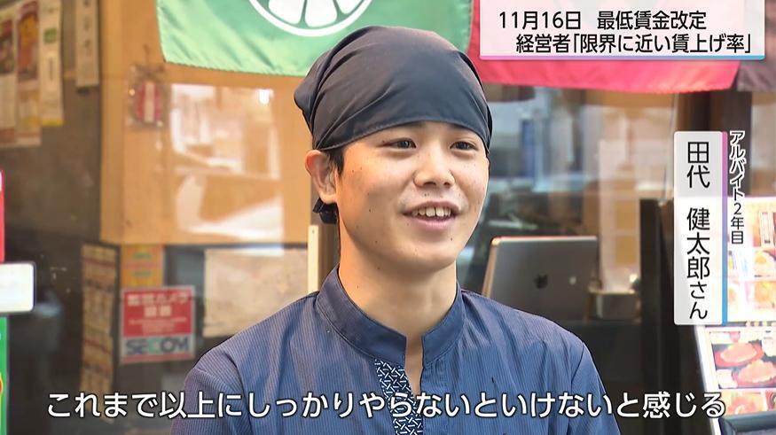 アルバイト歴2年目の田代健太郎さんは「これまで以上にしっかりやらないといけないと感じる。働いた分だけしっかりお金が入ってくるようになっているので、自分のやる気に影響する」と話した。