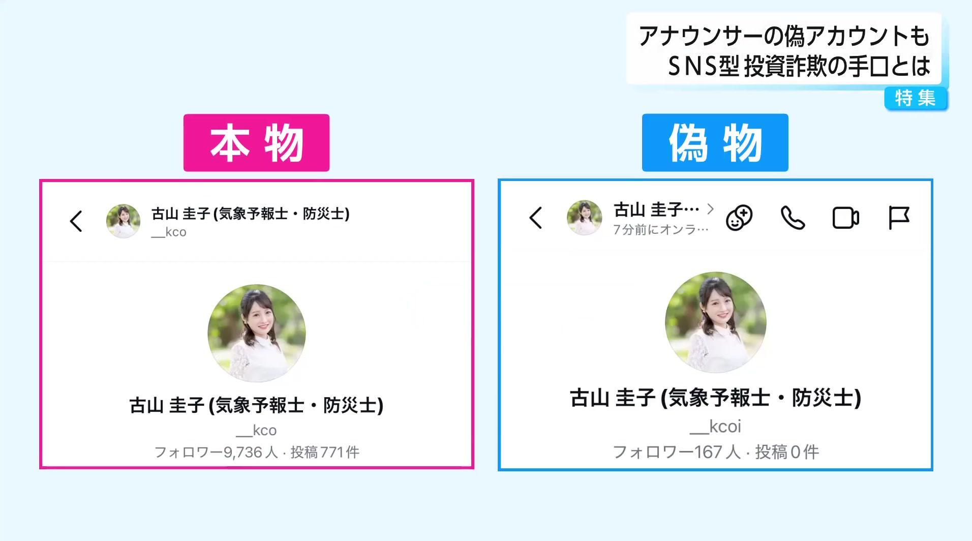 アナウンサーや気象予報士に「なりすまし」 地方テレビ局でも偽アカウント被害 半年で10回以上繰り返される例も 県内被害5億円超「SNS型投資詐欺」に注意